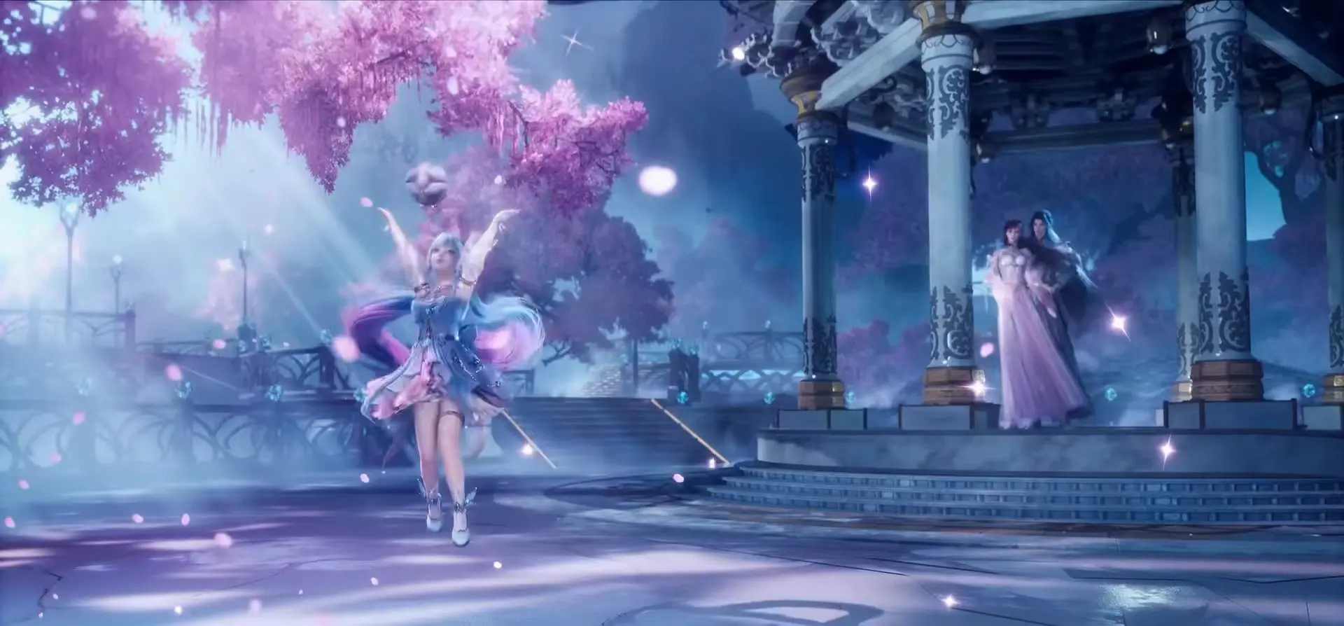 她的发量更是让人羡慕,随着跳动头发还甩来甩去,更是吸引人。注意看还能发现,童年时期的唐舞桐还很贪玩,在神界的一处凉亭旁玩着球,还用上了魂力,还跑来跑去。关键是不远处,有着两个人,正靠在一起看着唐舞桐。